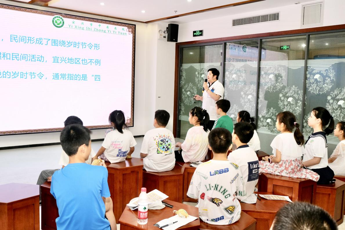 在中医药文化讲座上,医务人员以“宜兴夏秋季民俗中的中医药元素”为主题,运用通俗易懂的语言与图文并茂的PPT,为孩子们讲了一个个有趣的中医小故事,还介绍了乌米饭、雄黄酒、黄瓜等食物的保健功效。